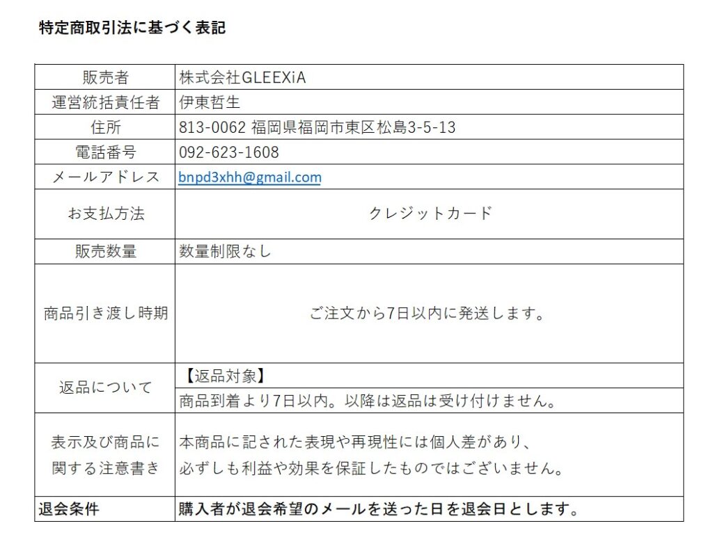 特定商取引法に基づく表記